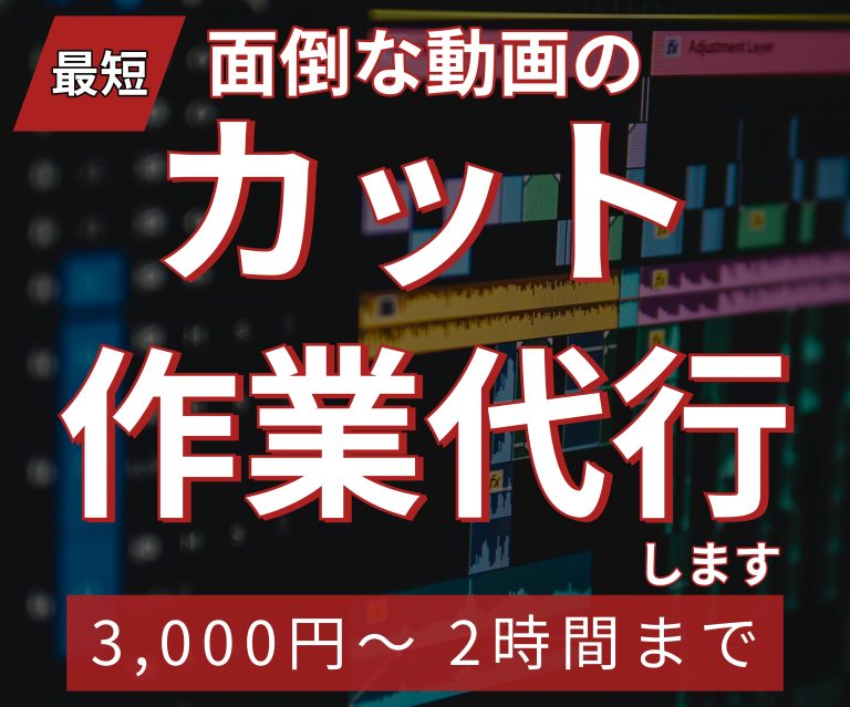 NH1213 動画編集で必ず必要な「カット作業」地味で時間のかかる作業です。少しでも効率化して時短したいものです。 そこで、動画のカット作業代行を始めました。 最大の特徴は納品までの早さです。2日以内の納品を目安としています。都合が合えば2 […]